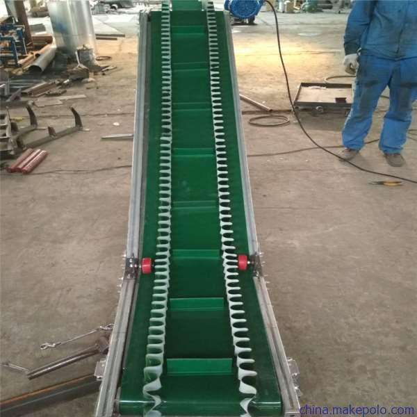 Z型裙邊皮帶輸送機(jī)結(jié)構(gòu)是在平形橡膠運(yùn)輸帶兩側(cè)有自由伸縮的橡膠波形立式“裙邊”,輸送機(jī)在裙邊之間又粘有一定強(qiáng)度和彈性的橫隔板組成匣形斗,使物料在斗中進(jìn)行連續(xù)輸送。Z型皮帶輸送機(jī)在環(huán)境溫度為-19℃~+40℃范圍內(nèi),輸送堆積比重為0。5-2。5t/m3的各種散狀物料。